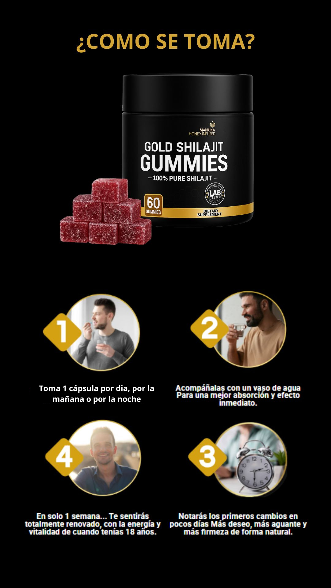 Sí. El producto está elaborado con Shilajit puro y ha sido probado por laboratorios independientes para garantizar su calidad y seguridad. La dosis recomendada es de 1 gomita al día, preferiblemente por la mañana.